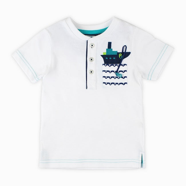 Donnie Baby Boy Blue Printed Polo and Shorts Set