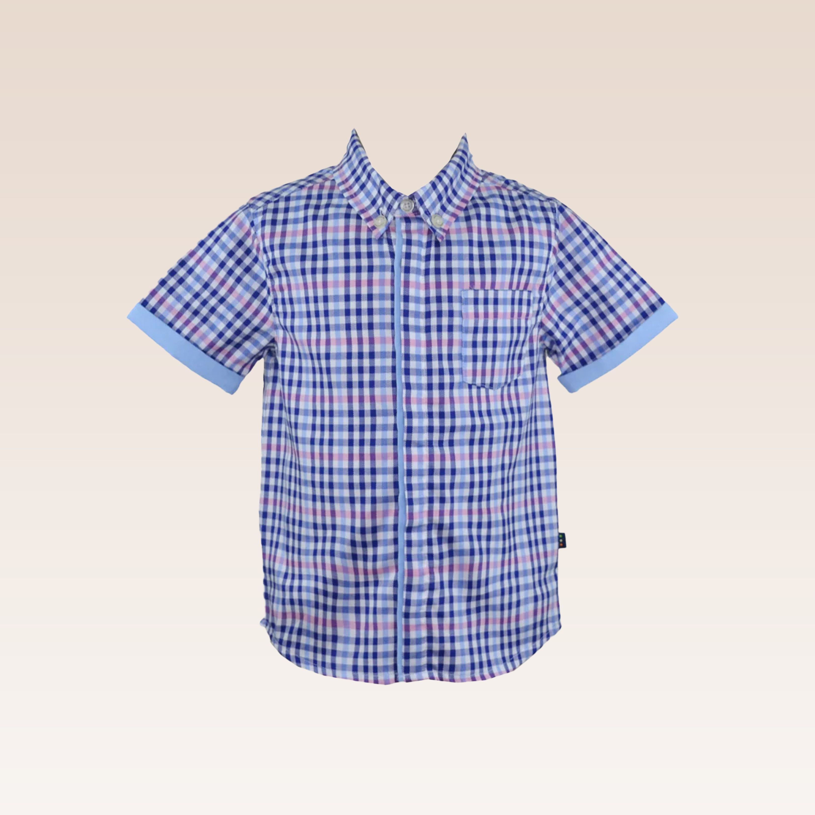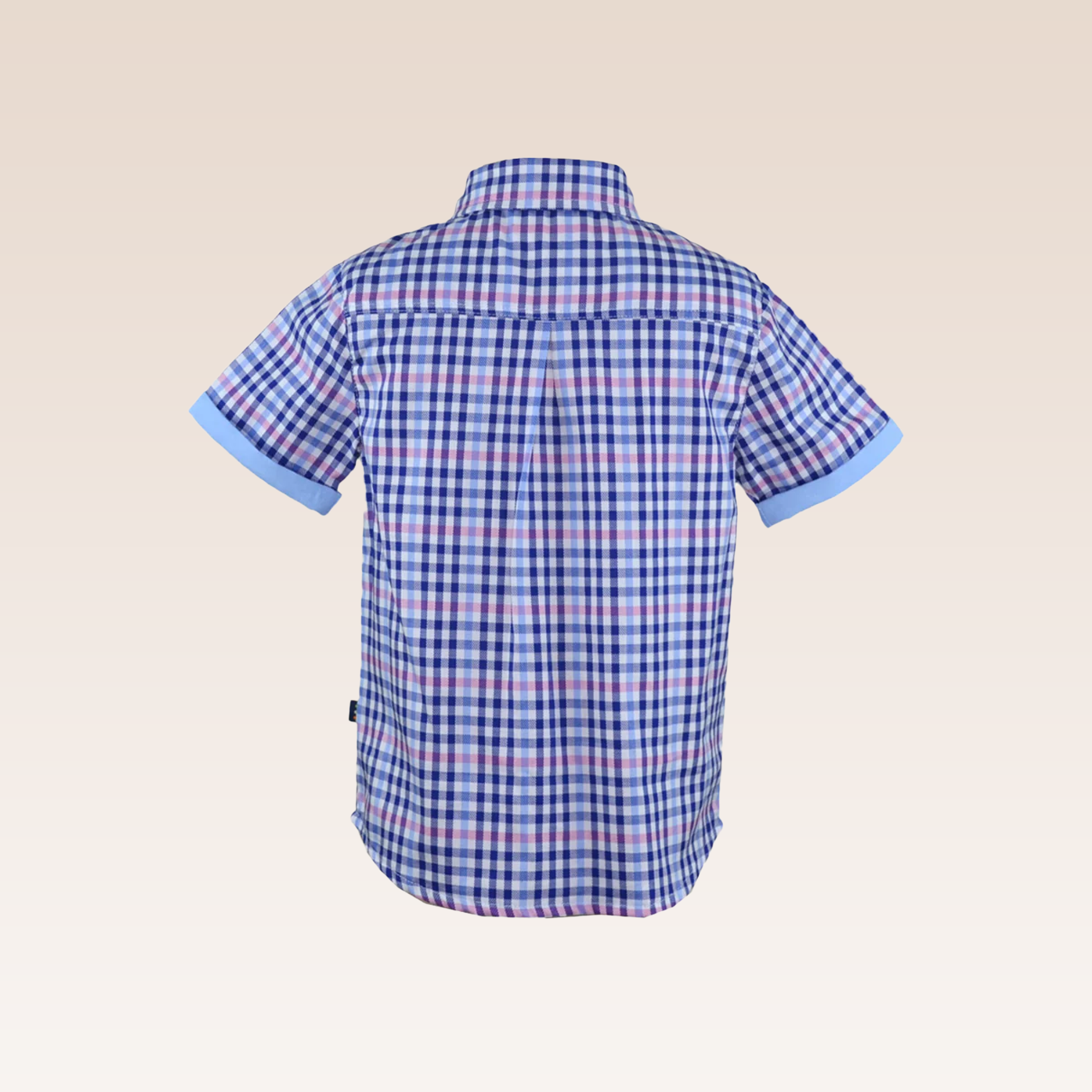 Andres Baby Boy Blue Checkered Short Sleeved Polo