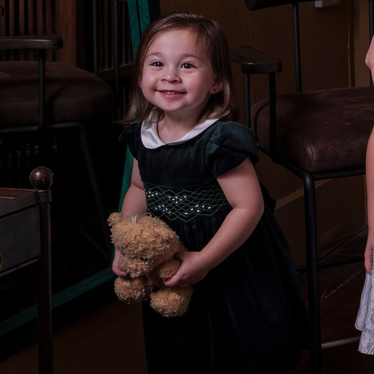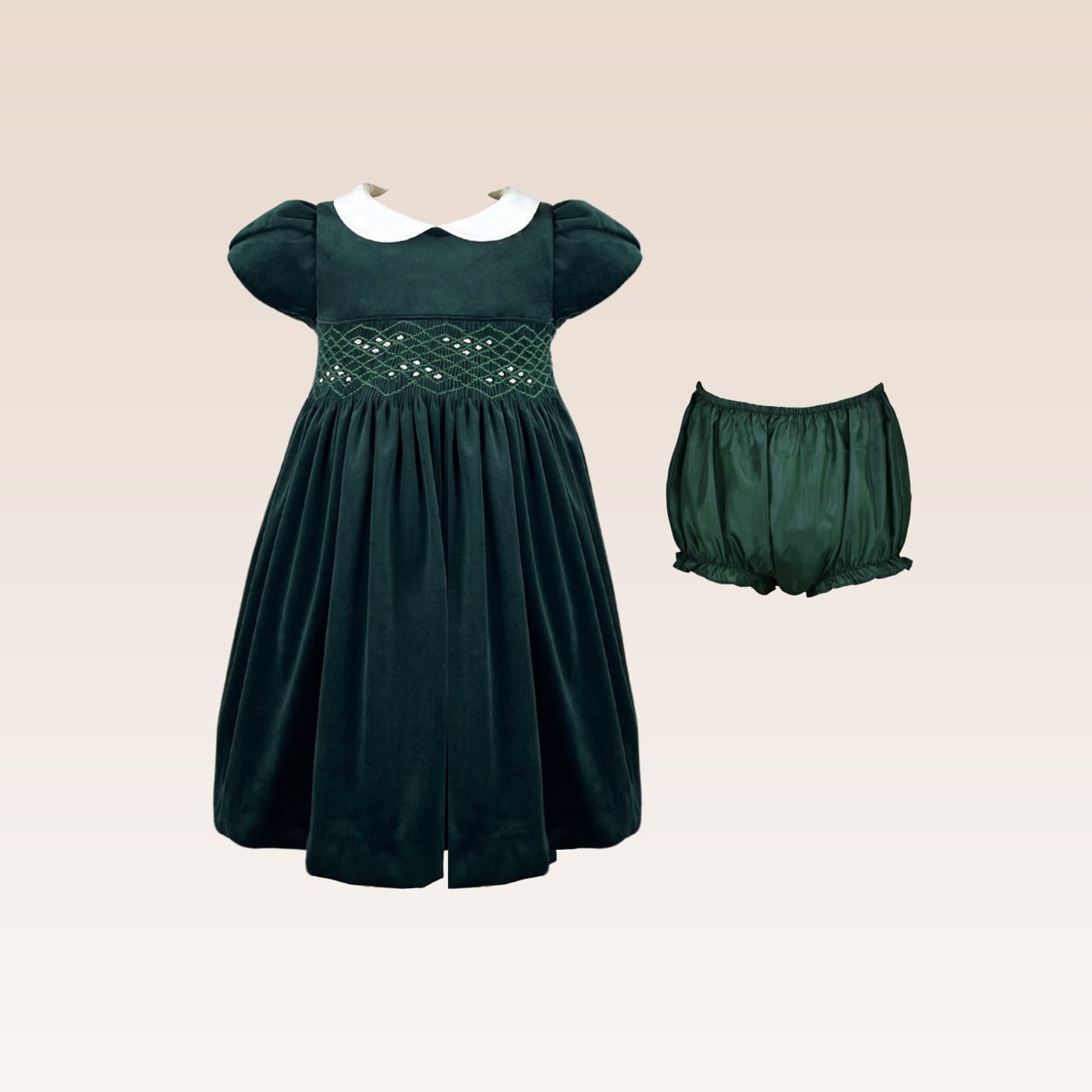 Narrah Baby Girls Green Smocked Velveteen Party Dress