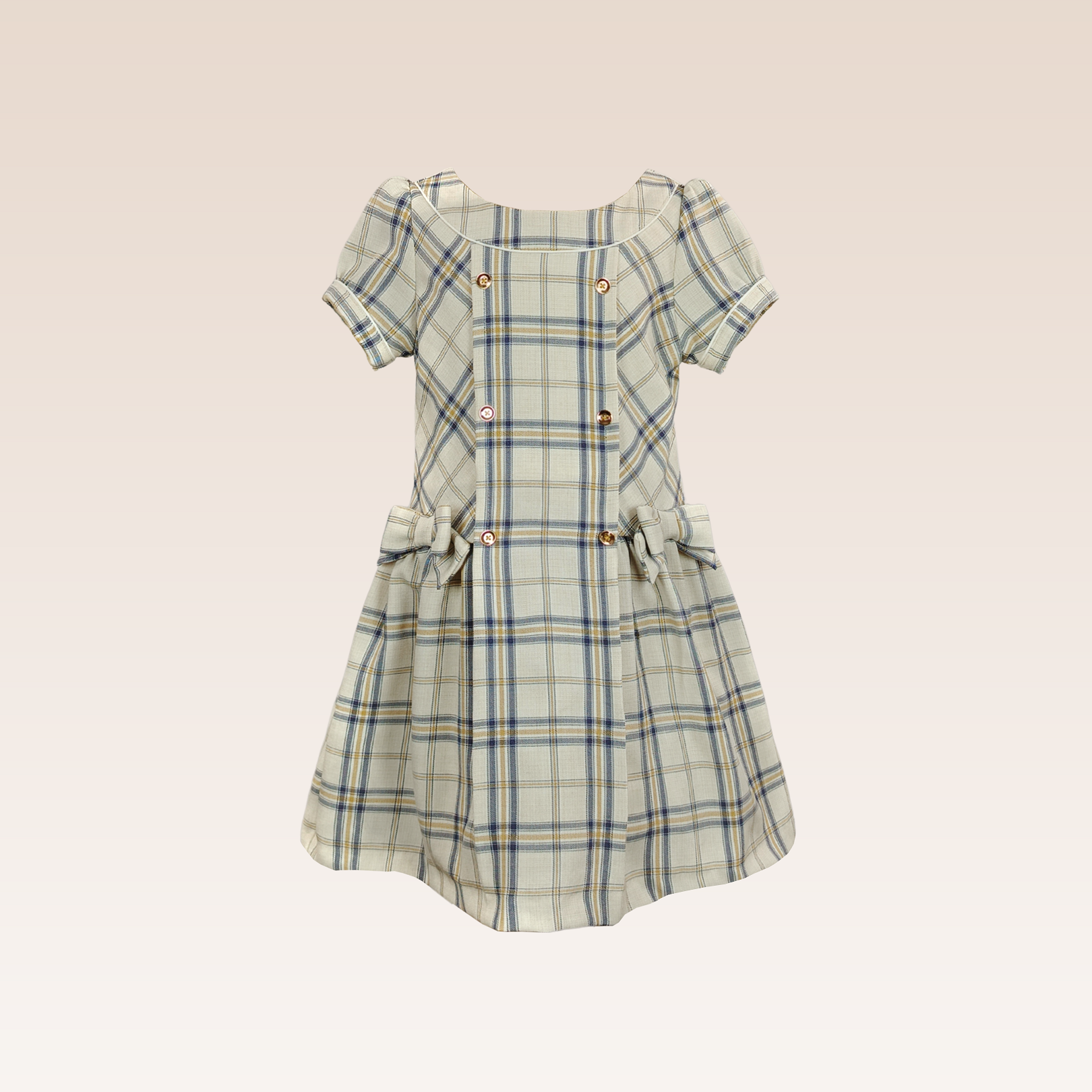 Mendy Girls Beige Checkered Dress