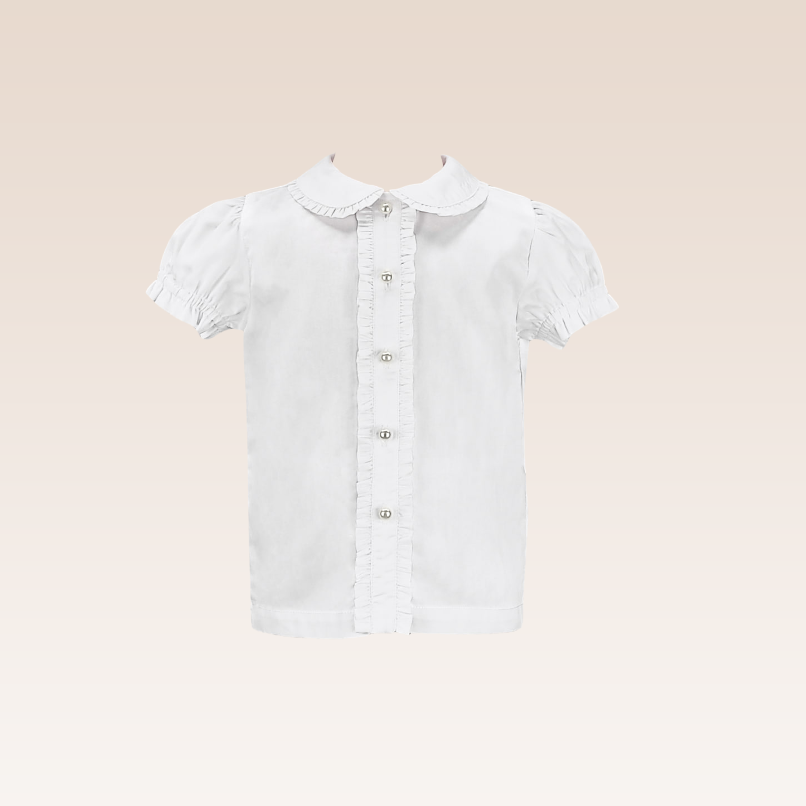 Kasandra Girls White Dress with Ruffles at Front and Collar