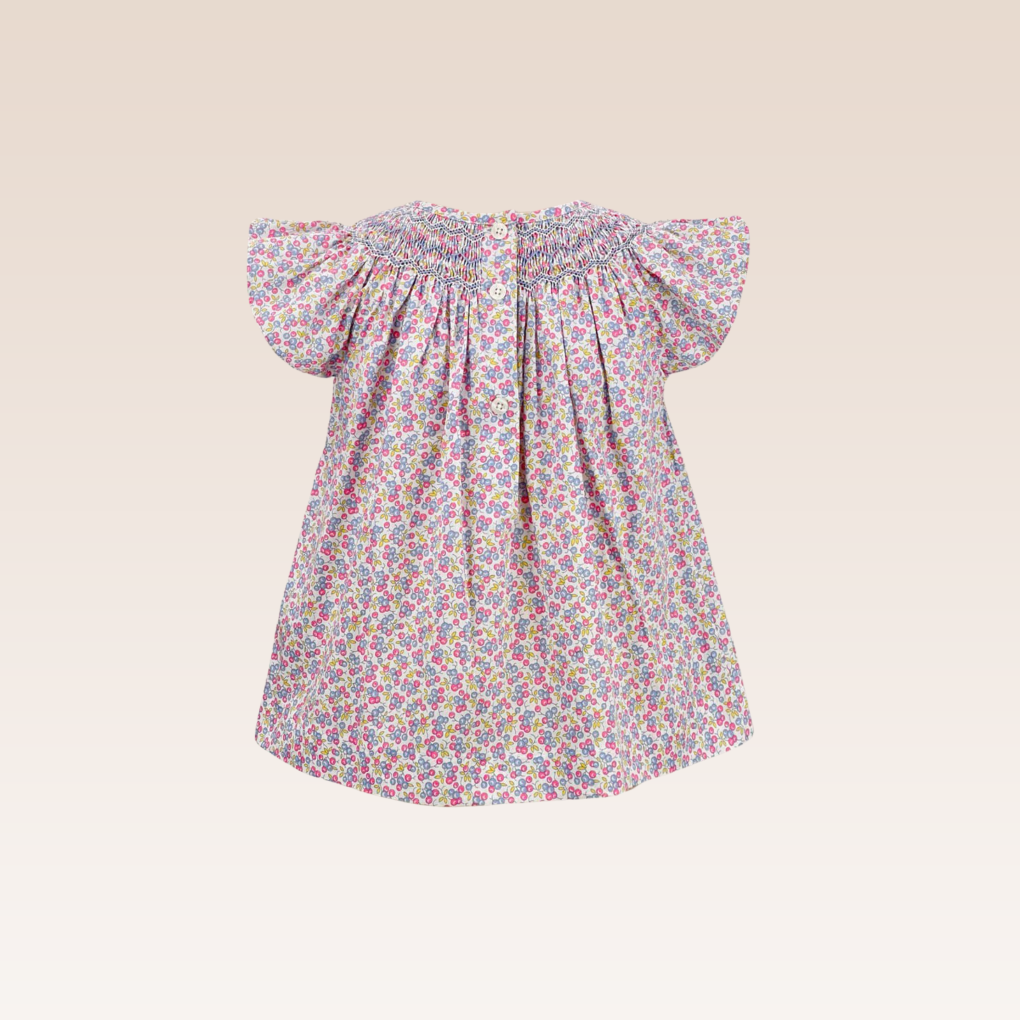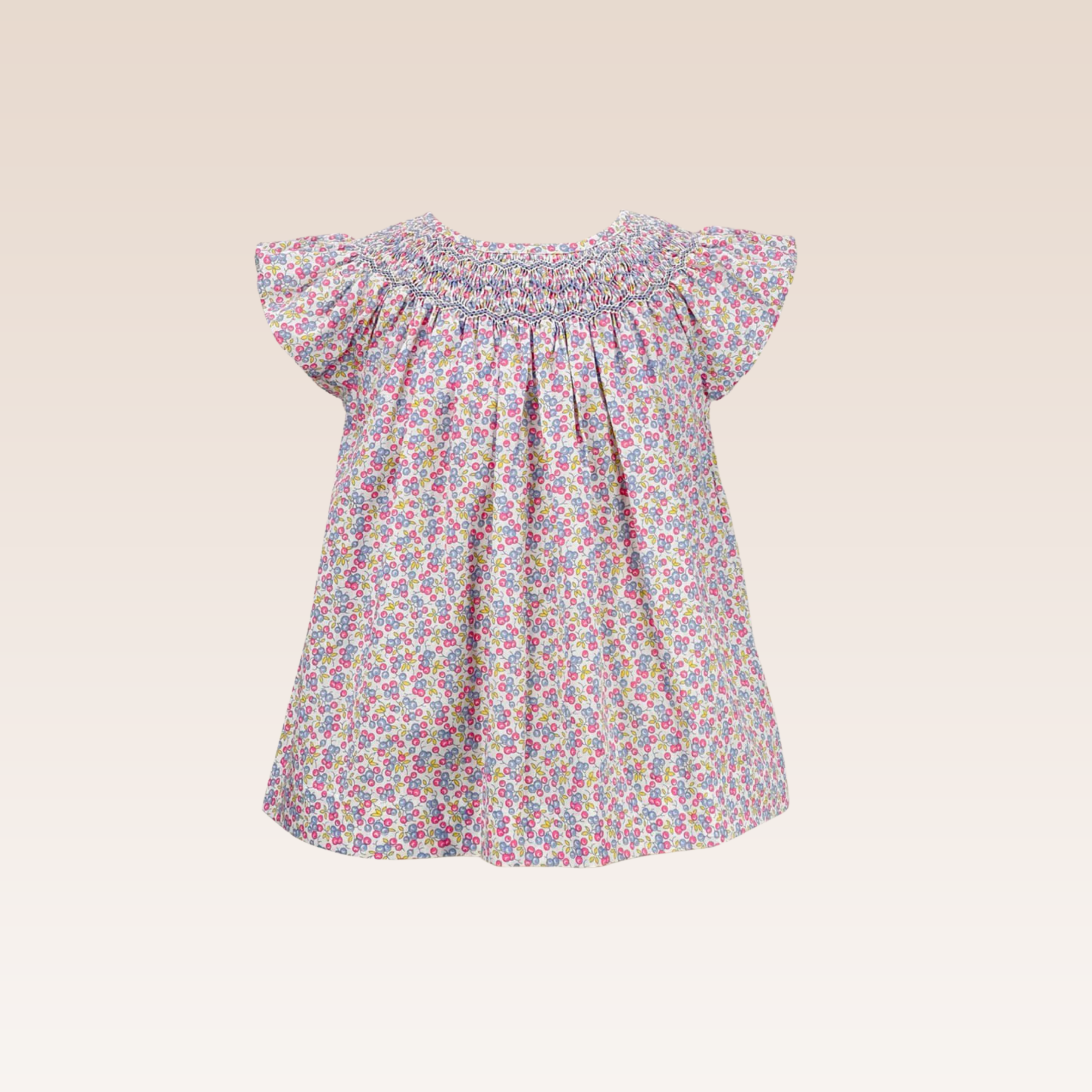 Gayle Girls Pink Floral Bishop Smocked Blouse