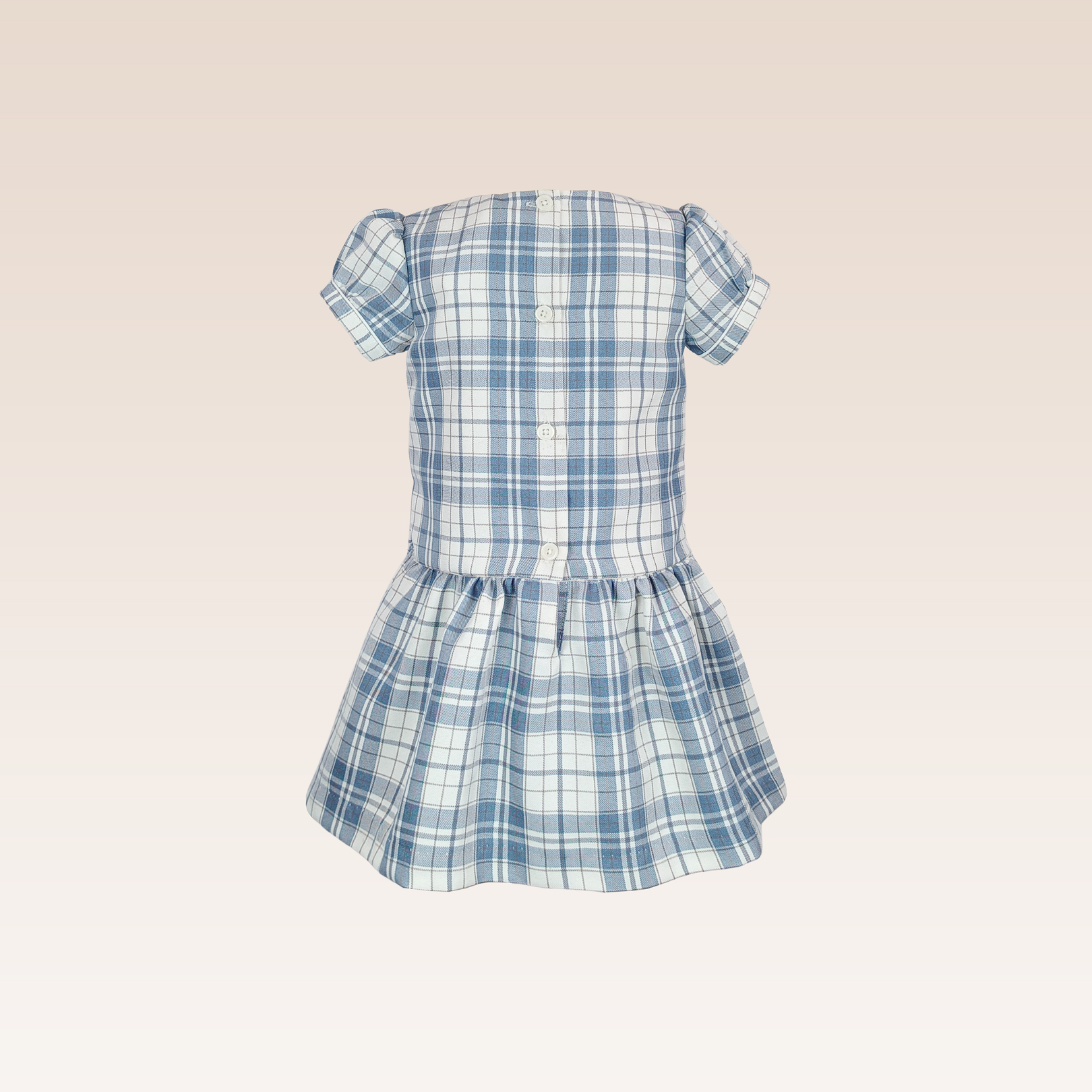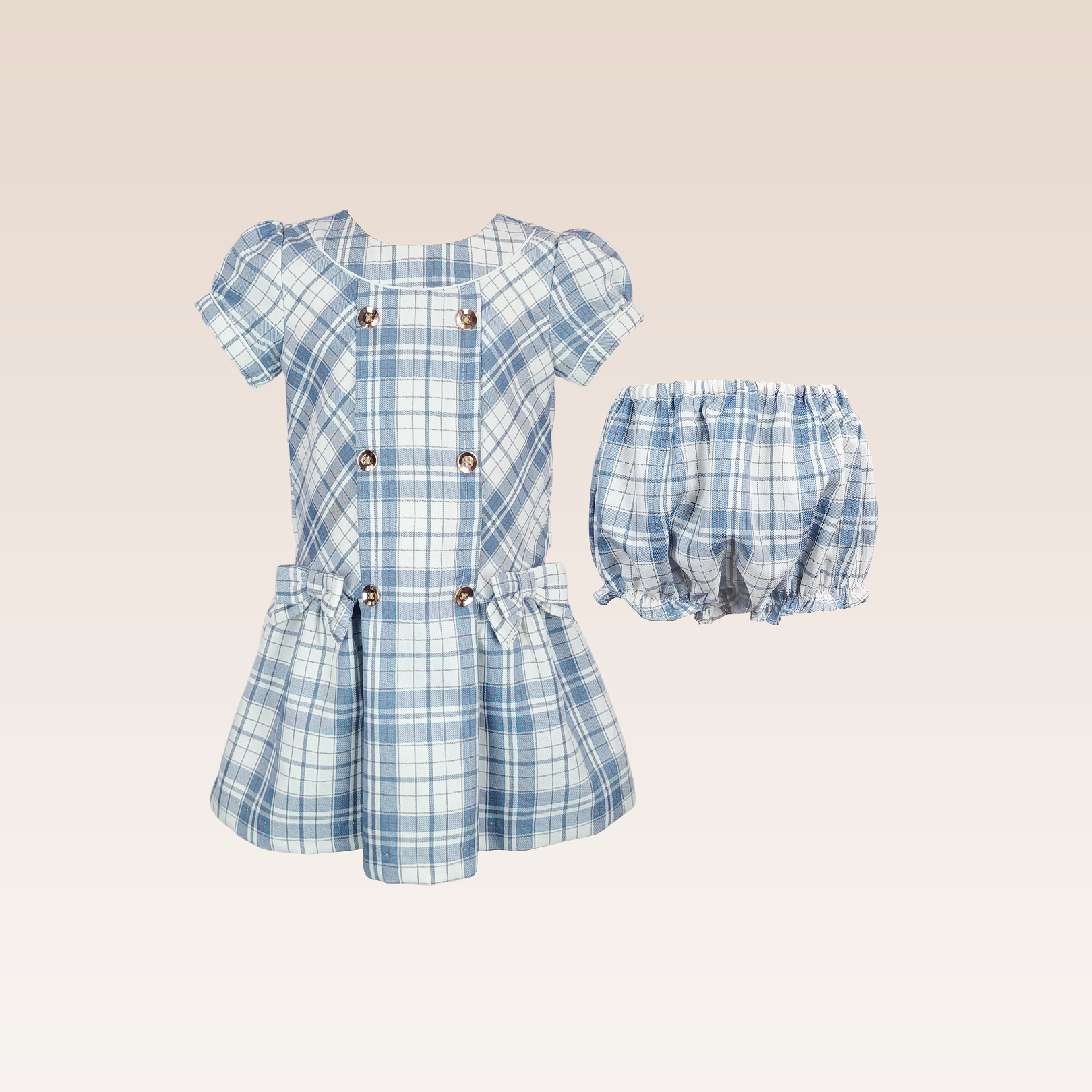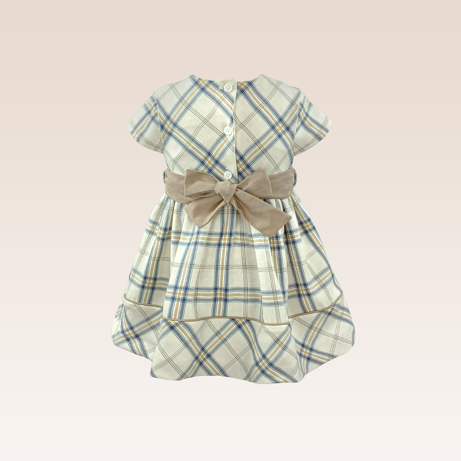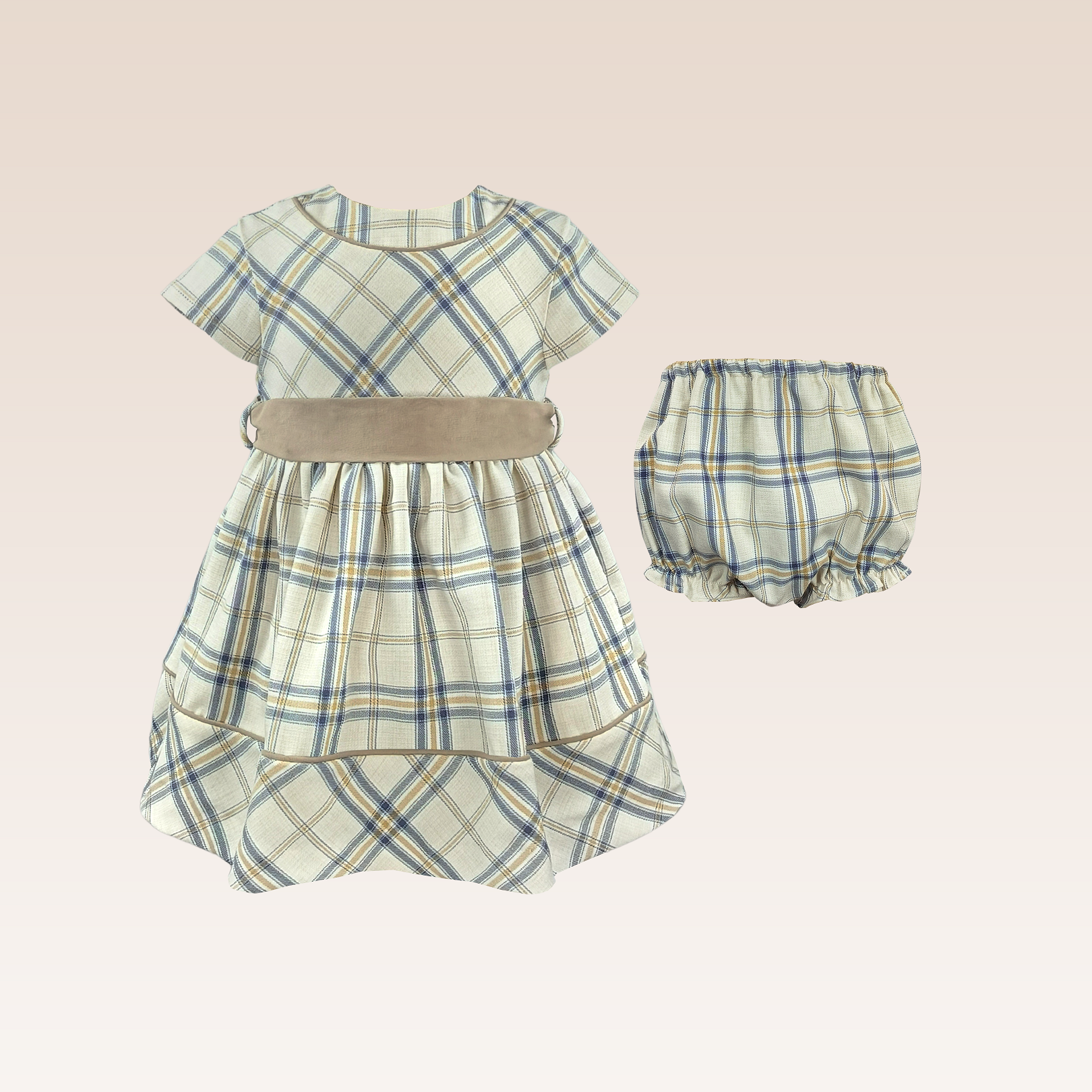 Molly Baby Girls Beige Belted Checkered Dress with Diaper Cover