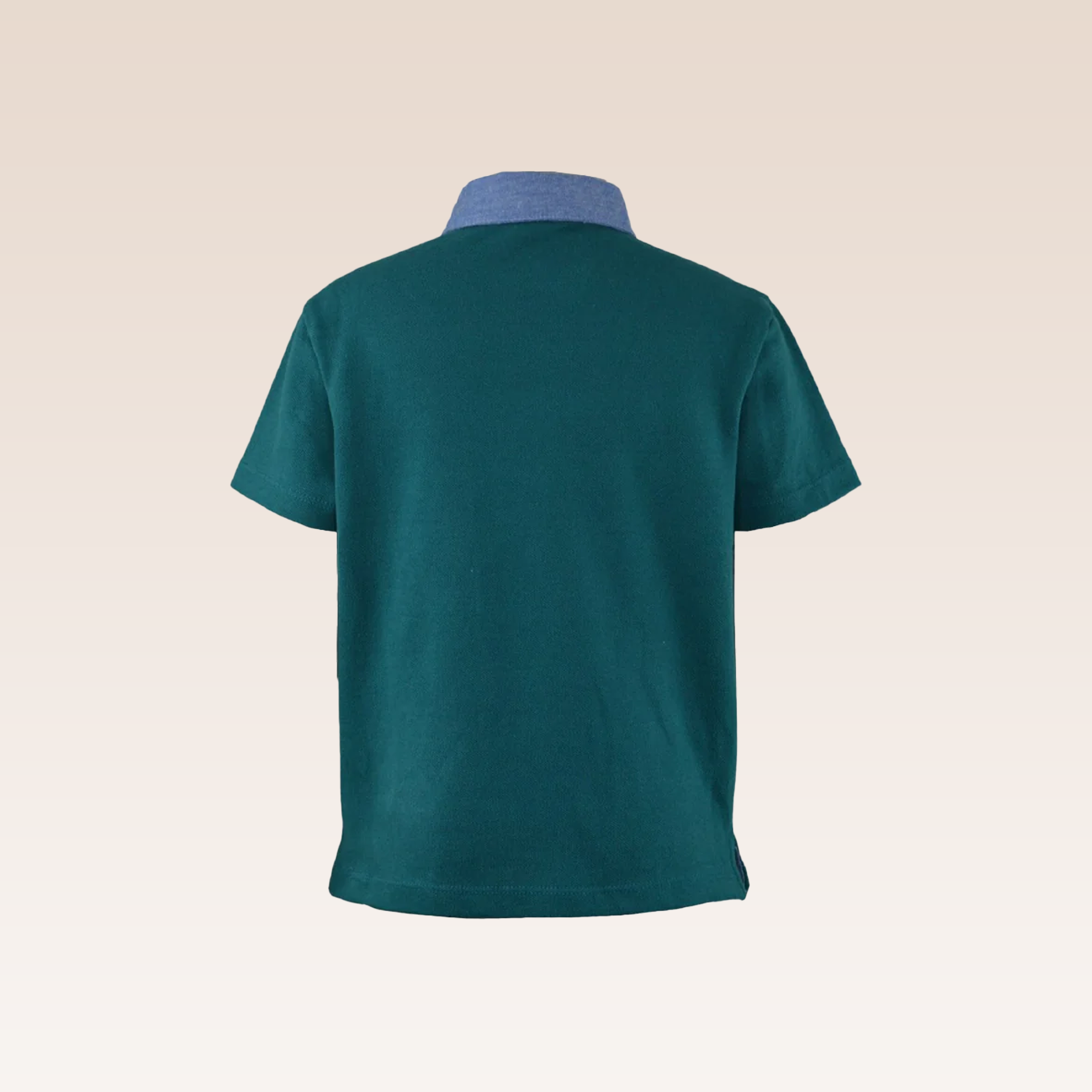 Bastian Boys Green Polo Pique Shirt with Chambray Combination