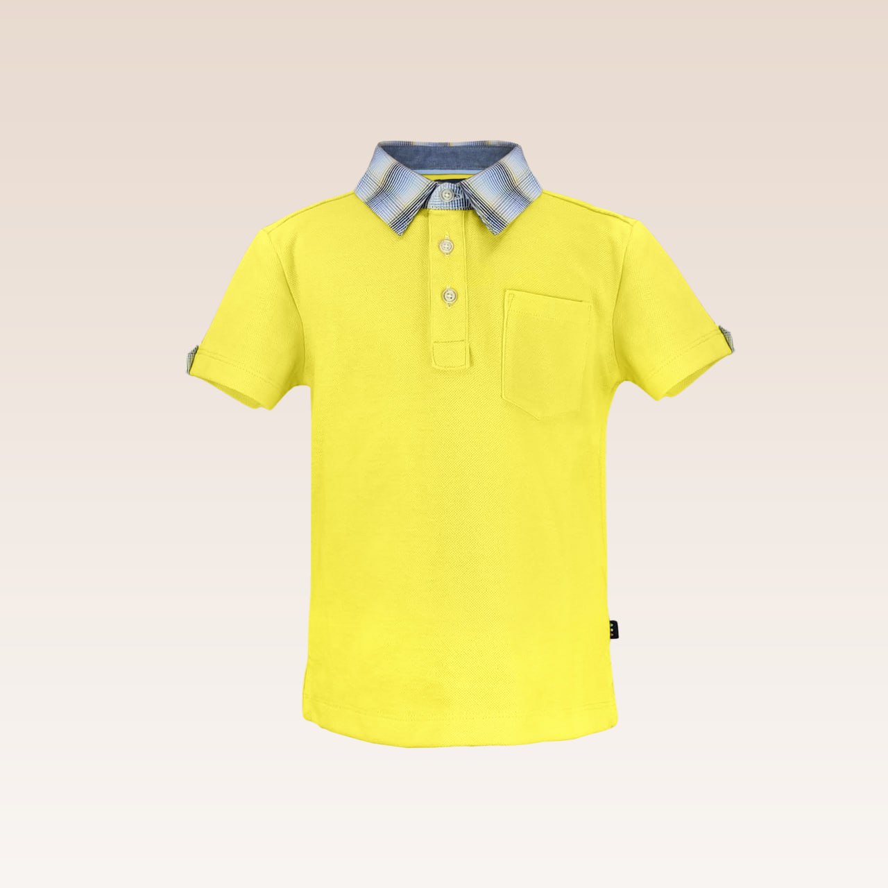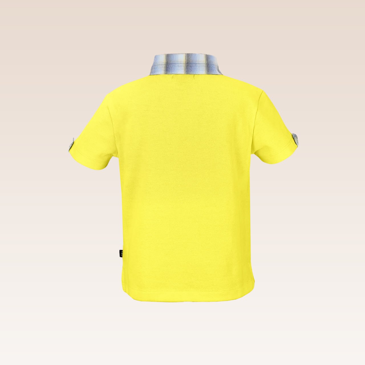 Benedict Boys Yellow Polo Pique Shirt with Checked Woven Collar
