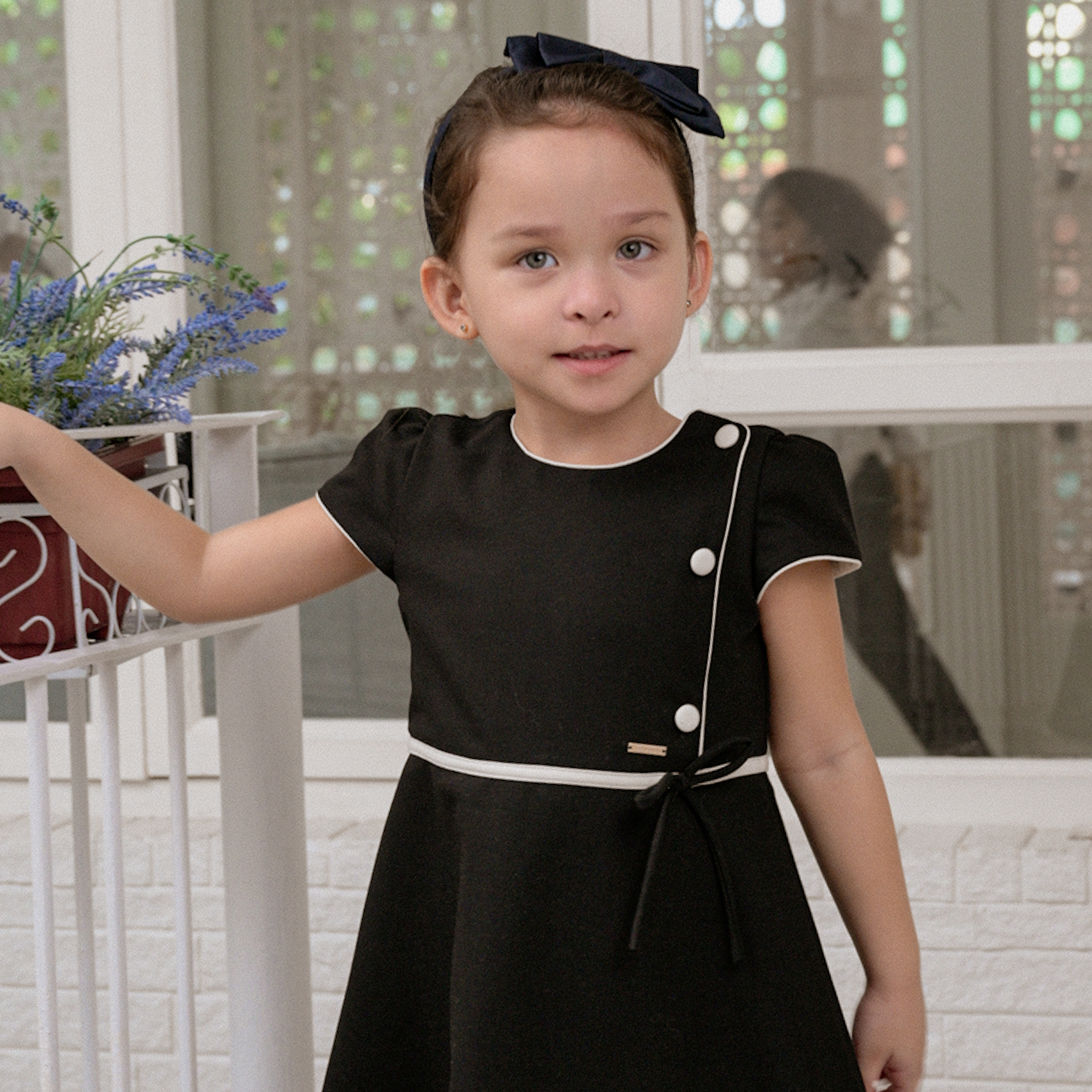 Tayla Girls Navy Sailor Drop Waist Dress with Bow Clip