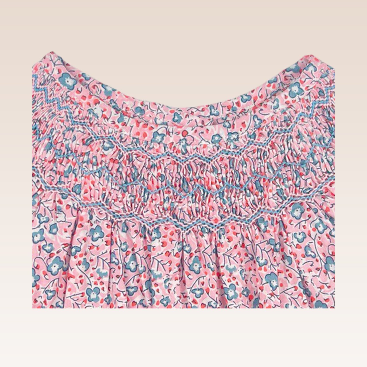 - Periwinkle's hand-smocked blouse showcase delicate and elaborate needlework, meticulously stitched by hand, achieving what no machine can.