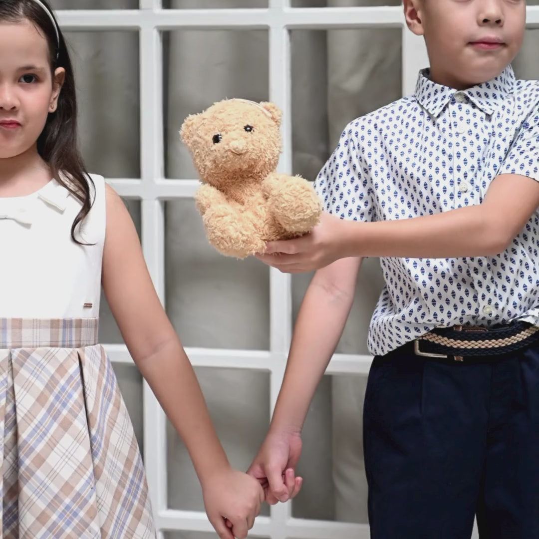 Macey Girls Beige Checkered Dress