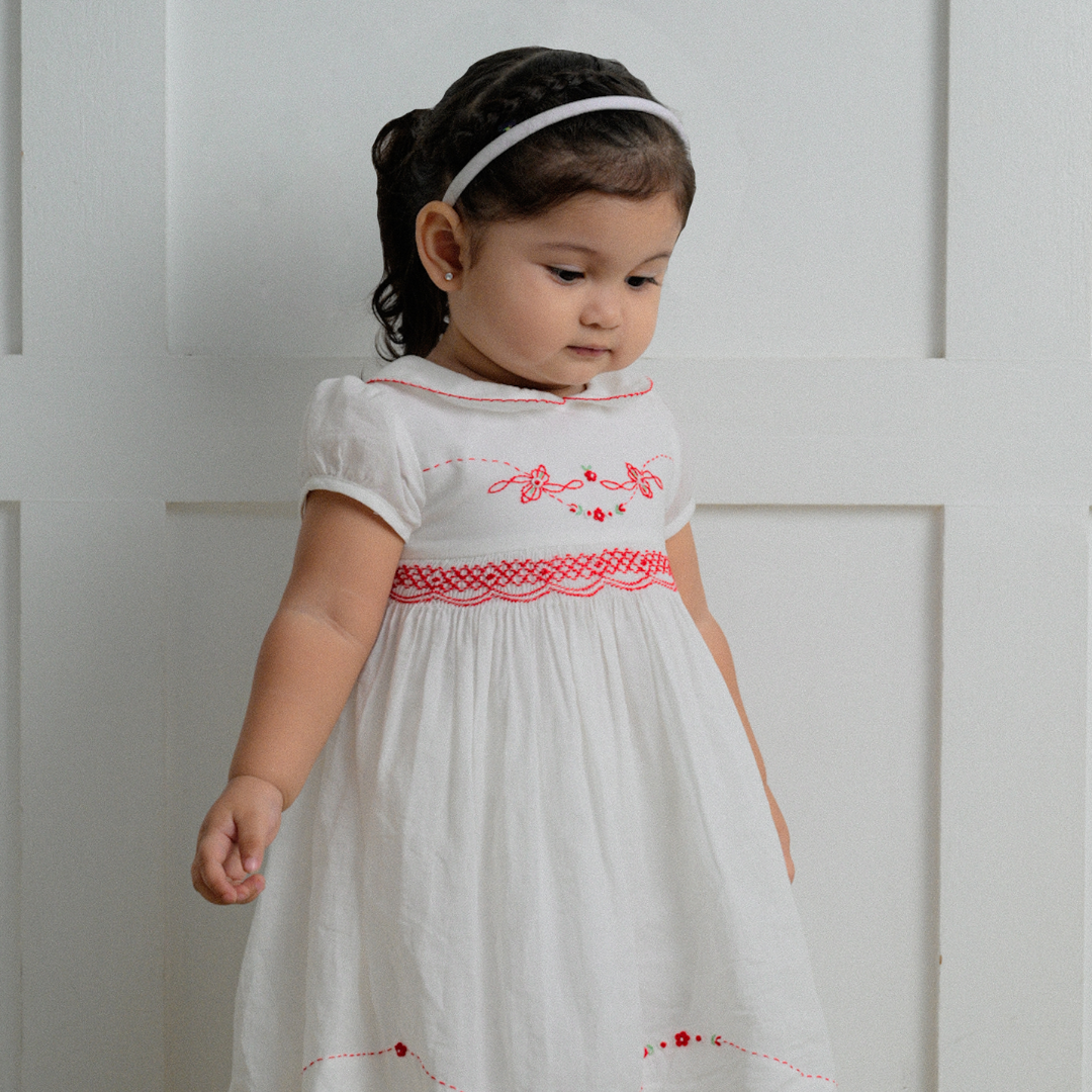 Neve Baby Girls Ivory Smocked Dress with Embroidery