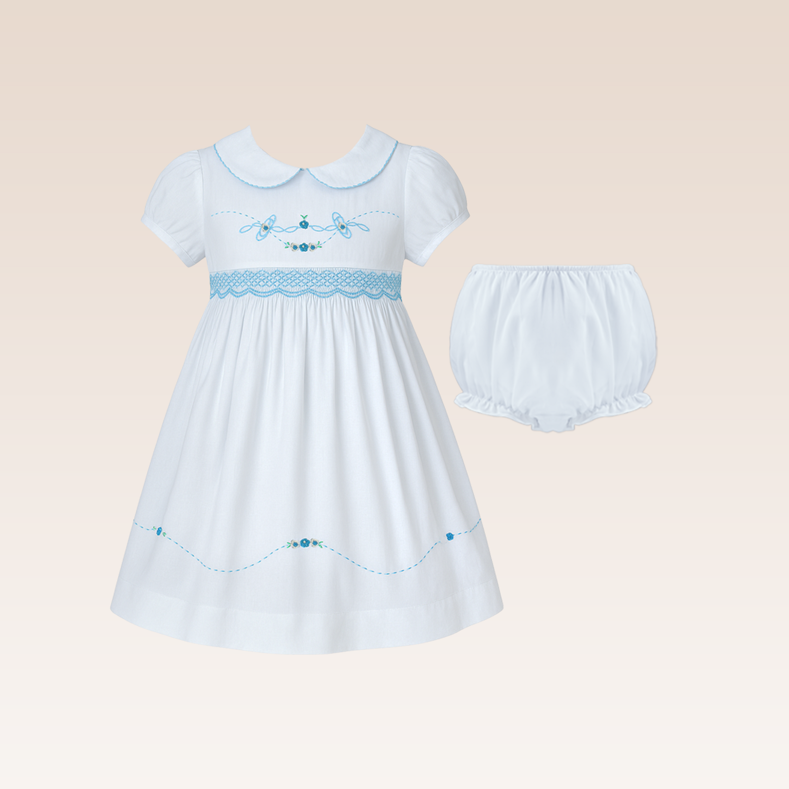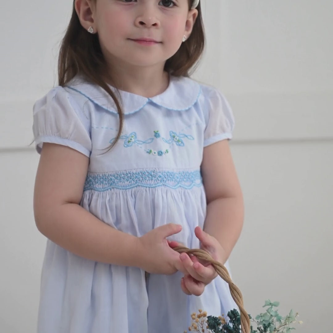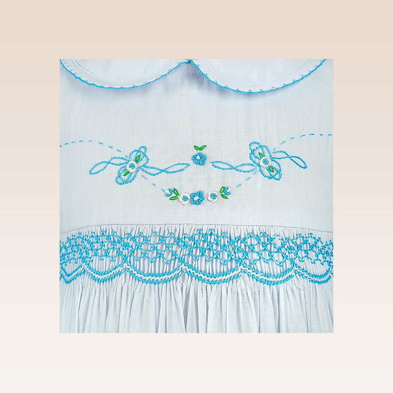 Neve Baby Girls Light Blue Smocked Dress with Embroidery