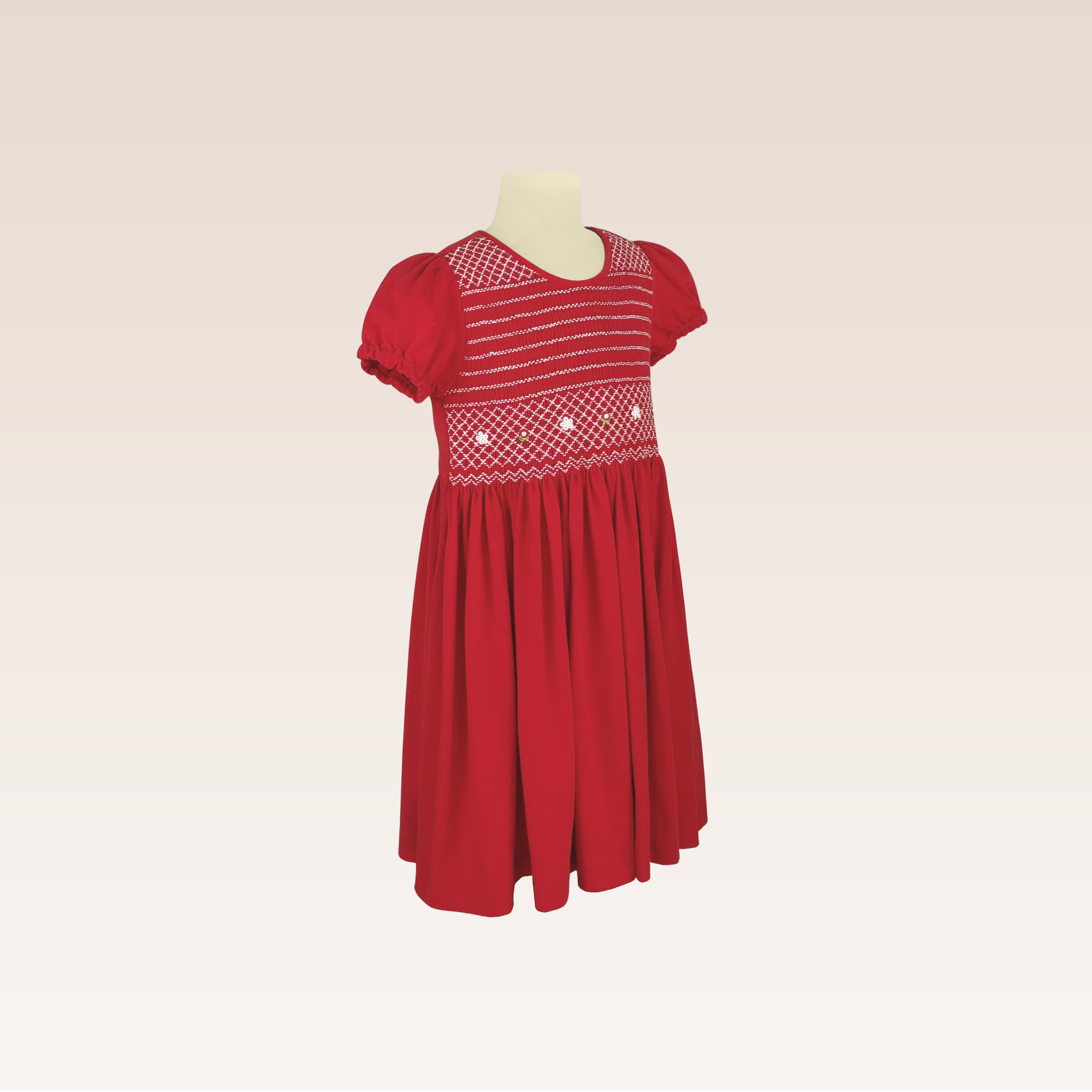 Amandine Girls Red Smocked Dress