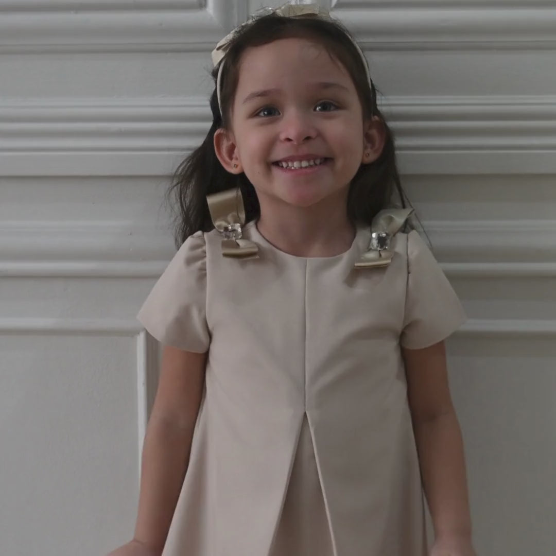 Randa Girls Beige Shift Dress with Headband